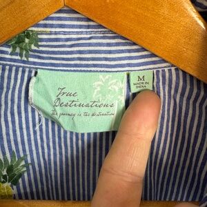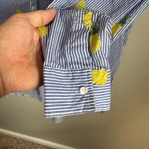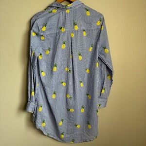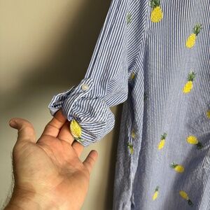 True Destinations Pineapple Long Sleeve 1/2 Button Tunic Beach Cover Shirt M