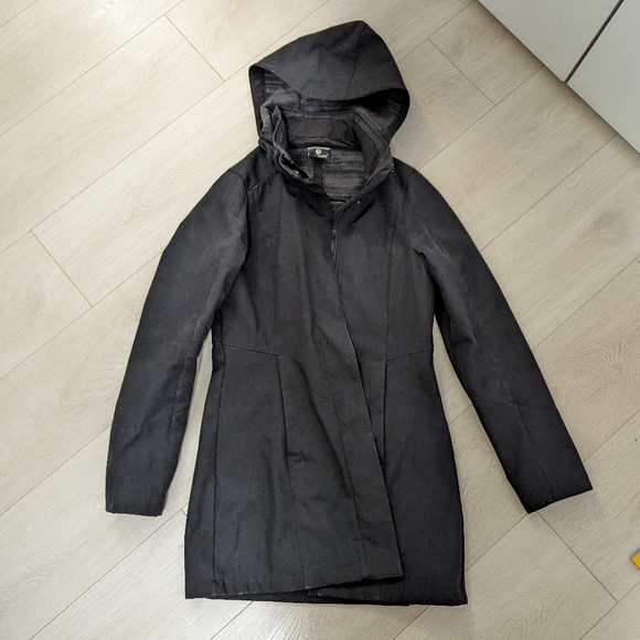 In good condition soft shell jacket. Bought this at Costco years ago. No longer fits. Zippers are in tact.