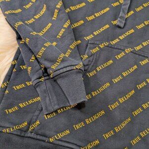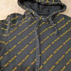 True Religion Allover Print Men's Black Pullover Hoodie Sweatshirt Size S