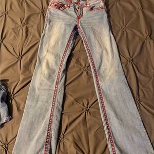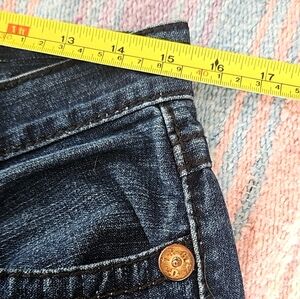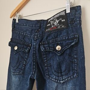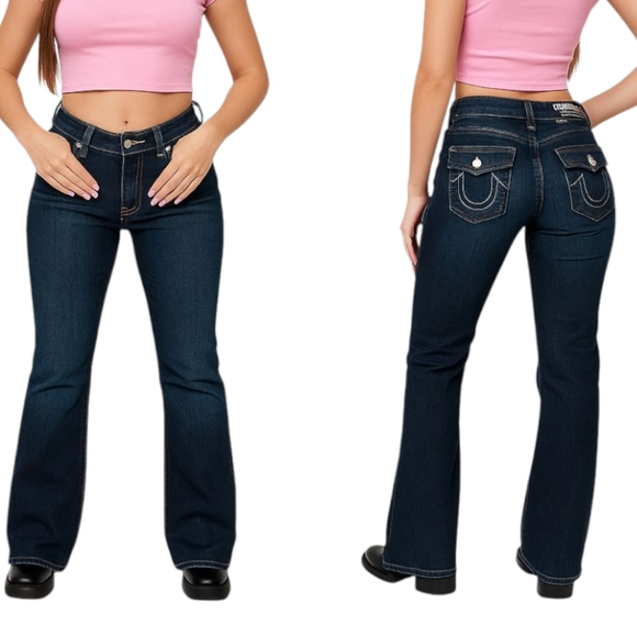 Step into Y2K fashion with these stylish True Religion jeans! Featuring a mid-rise fit and signature twisted leg with a slight flare, these jeans are perfect for any casual outing.