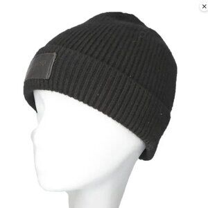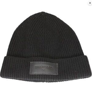 True Religion Black Cashmere Wool Blend Knit Beanie Toque Hat Ribbed Winter Skull Cap