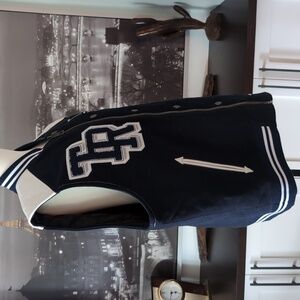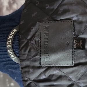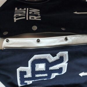 True Religion blue/white varsity bomber jacket /vest.