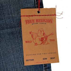 These Denim vintage inspired flare Jeans by True Religion are New with Tags (NWT). These five pocket jeans are decorated by stitching and are a medium wash.
