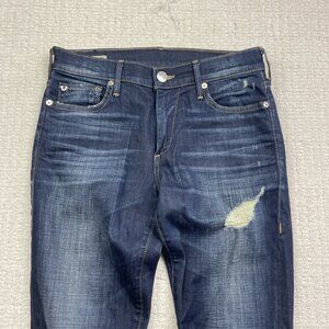 True Religion Blue Mid Rise Super Skinny Halle Jeans Women's 27 Distressed Y2K