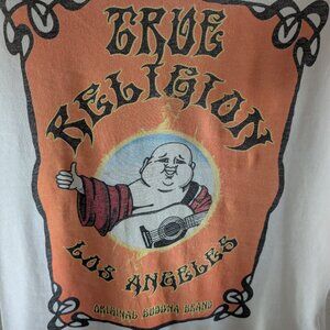 True Religion Buddha Logo White Graphic Tee T-Shirt Y2K Size XS