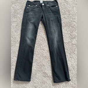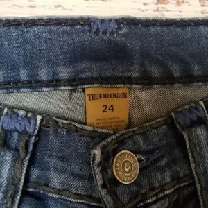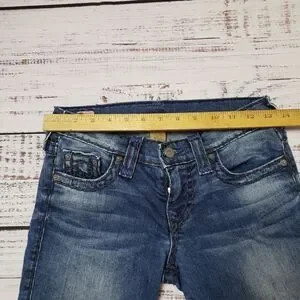 True Religion Cora Super T Slim Straight Jean 24. Good used condition with some wear as pictured. Thick sticthing. straight fit jean. Measurements in the photos.