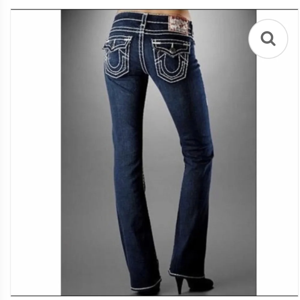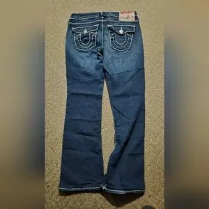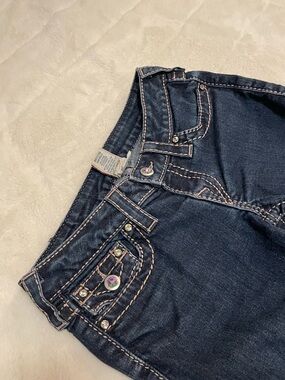 True Religion Becky Super T jeans with signature rope thread stitching. Sz.29 waist 16",rise 8",inseam 30" In lightly pre-owned condition
