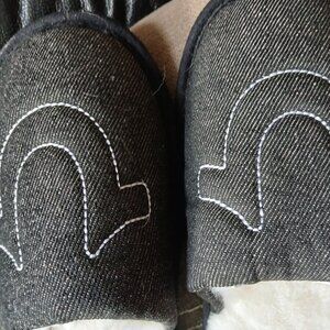Iconic TR horse shoe logo embroidered on dark charcoal denim