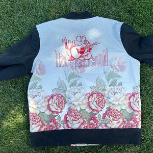Women's large True Religion flower patterned bomber jacket in like new condition