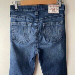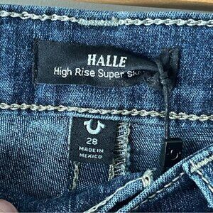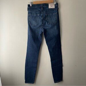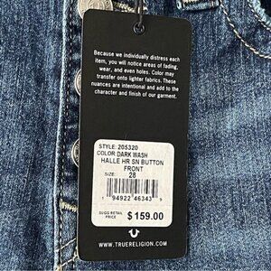 True Religion HALLE HR SN BUTTON FRONT Size 28 In Dark Wash Exposed Button NWT