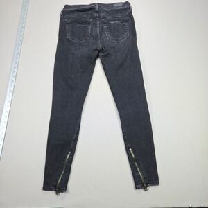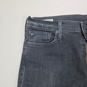 True Religion Halle Mid Rise Super Skinny Jeans Black Wash Zipper Ankle Size 28