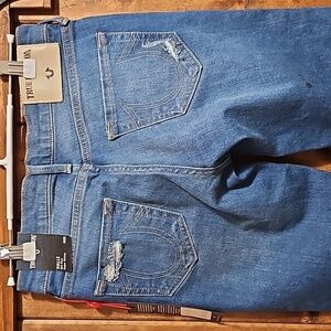 True Religion Halle Jeans offer a stylish fit with a classic distressed look.