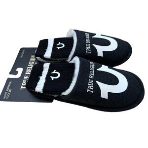 True Religion Horseshoe House Slippers & Sock Set Black ( M )