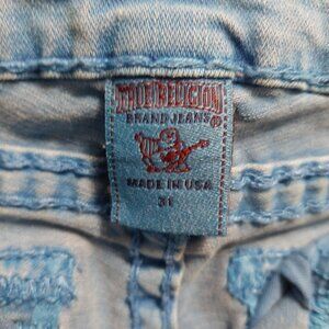 Step into effortless style with these True Religion jeans in a beautiful blue hue, perfect for any casual occasion. Crafted for unisex adults, these regular fit jeans feature a size 31 waist, promising a comfortable and flattering fit for a variety of body types.The denim is characterized by the brand's signature attention to quality and detail, ensuring that these jeans not only look great but are also built to last. Make them a staple in your wardrobe and enjoy a piece that effortlessly blends contemporary fashion with timeless appeal.