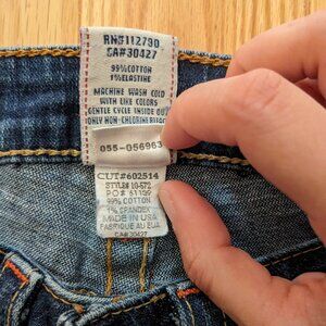 If I am remembering correctly, these True Religion jeans were purchased from Revolve Clothing the mid- or late 2000s. I had them hemmed to be ankle length on me. They were worn and washed with care and are still in excellent condition.