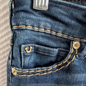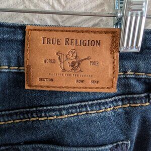 True Religion Jeans Halle Mid Rise Super Skinny Jean Dark Blue Wash Size 24