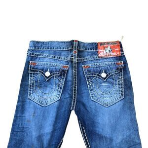 True Religion Jeans Size 38 RICKY SUPER T Blue Trashed Painter Denim