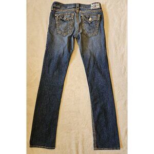 • True Religion Jeans Women 29 Straight Leg Low Rise Denim Thick Stitch 29Wx33L