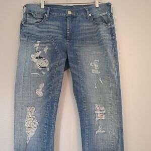 True Religion Jeans Women's 33X29 Distressed Audrey Slim Boyfriend Thrashed USA