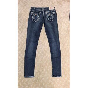 True Religion Jeans Women's Size 27x29 Skinny Flap Pocket Big T Stitch Dark Wash