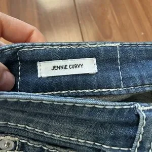 The Jennie Big T Straight Jean is a must-add to your denim collection. This mid rise curvy straight fit jean for women prevents gaping at the waistband and is specially designed to maximize shape retention throughout the day. Featuring fading, 3D whiskering, and contrast Big T stitching. Finished with our signature horseshoe detailing along the back pockets and a cool cropped hem.
