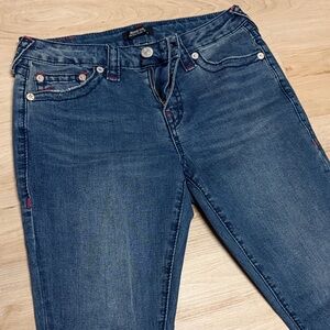 Stylish skinny jeans by True Religion. Dark blue denim. Classic five-pocket design. Perfect for casual wear.