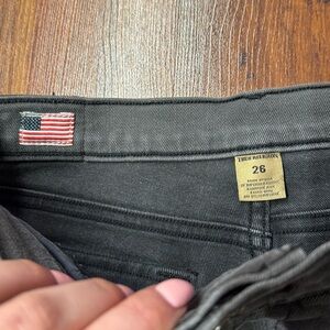True Religion Keira Low Rise Cutoff Denim Shorts Black Distressed Size 26