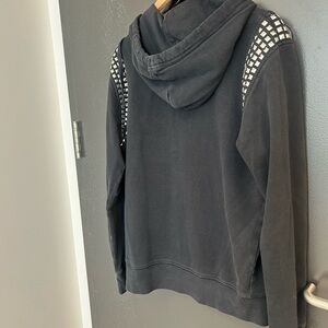 True Religion L unisex y2K black hoodie with studded details. Features a zip-up front and hood- very worn condition- makes it extra perfect!!