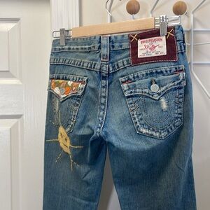 True Religion - Low Rise Flared Y2K Ashbury Pathwork Hippie Jeans Blue - 27
