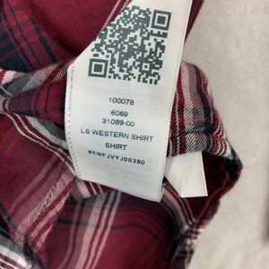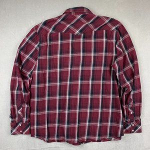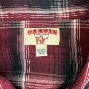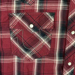 True Religion Men Shirt 2XL Red Plaid Western Snap Button Up Long Sleeve Pockets