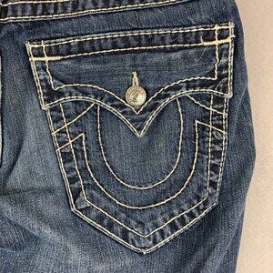 True Religion Mens Pants 32 Blue Denim Jeans Straight Leg Flap Pockets 32x28