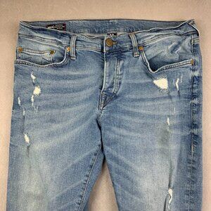 True Religion Mens Pants 34 Blue Distressed Jeans Rocco Relaxed Skinny 34x30