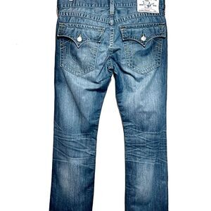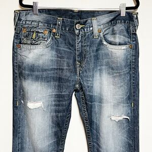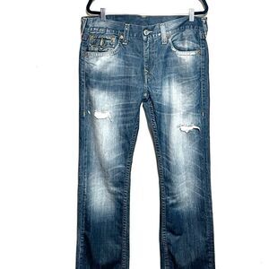 True Religion Mens Straight Leg Vintage Distressed Flap Pocket Jeans Sz 34/34
