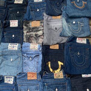 - The 3 jeans you will be receiving will be chosen from the giant lot of 600+ true religion jeans in my warehouse and will probobaly be listed in the photos, however they will remain a mystery
