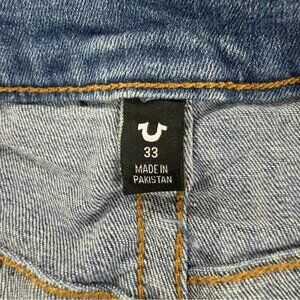 True Religion NWOT Embroidered Stitched Jeans Men's Size 34x34 Light Blue Denim in brand new condition as shown in the photos with no flaws.