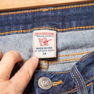 Gently preloved True Religion Shannon Style, skinny leg, medium wash, medium rise.