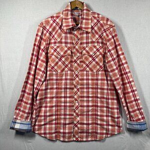 True Religion Shirt Mens Large Western Pearl Snap Long Sleeve Plaid Cotton Cuff