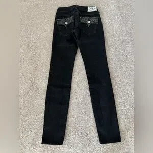 True Religion Skinny Low Rise Jeans – Size 24 – Black w/ Swarovski Rhinestones
