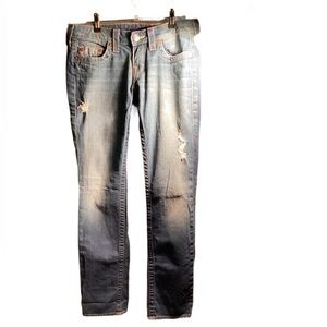 True Religion Stevie low rise medium wash Stretch Slim Distressed denim jeans 29