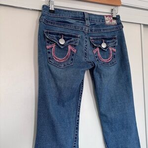 True Religion Stevie low rise medium wash Stretch Slim Distressed denim jeans 29