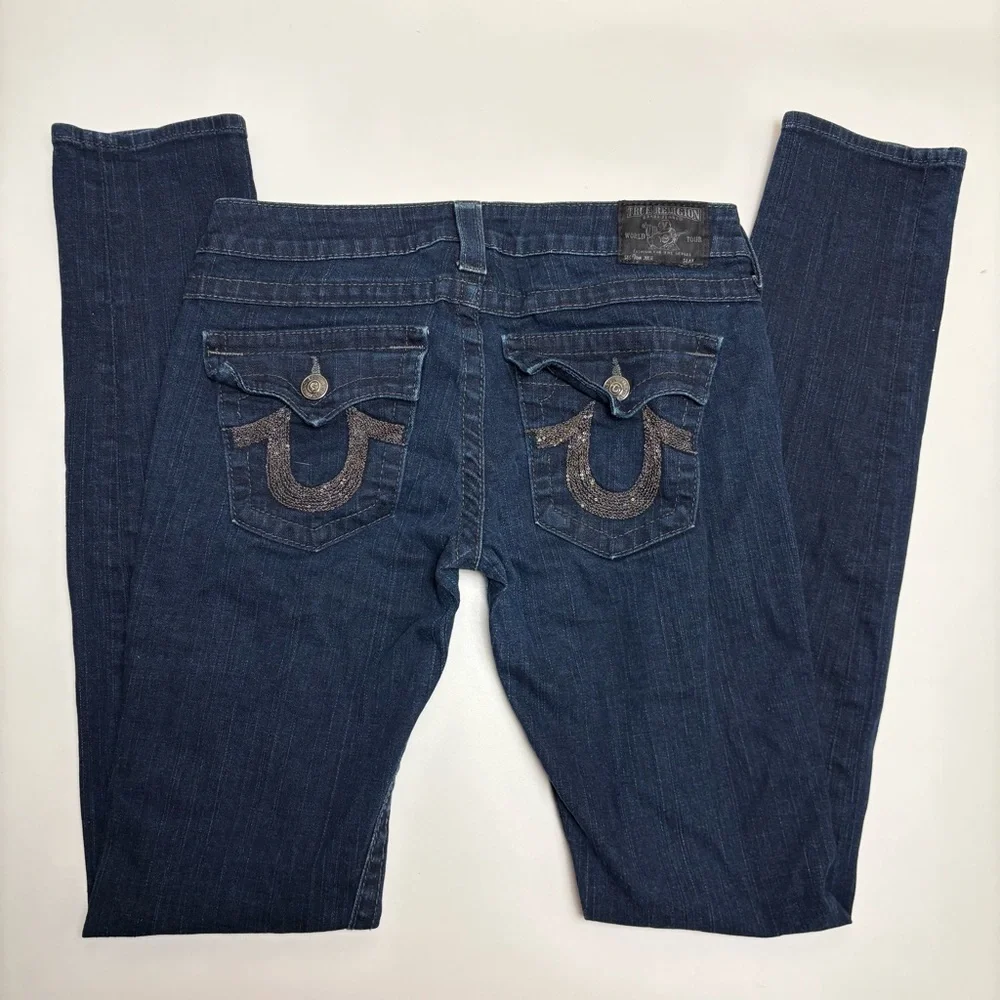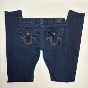 True Religion Straight Leg Jeans, Dark Wash, Size 30, Made in USA