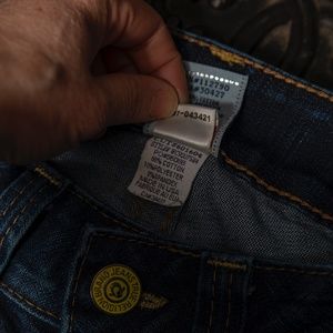 Gently preloved True Religion straight leg, leather label jeans.