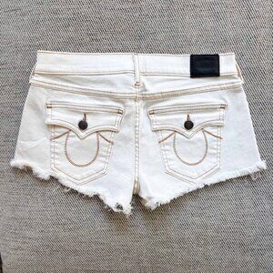 True Religion White Joey Cut Off Low Rise Super Short Shorts size 27