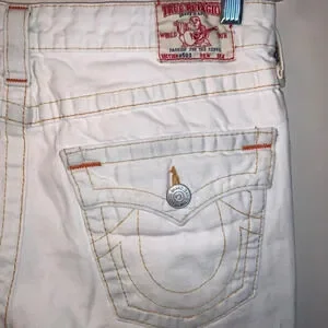True Religion White Low Rise Flare Distressed Jeans Y2K 30