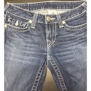 True Religion Woman 27x31 World Tour Billy Dark Wash Low Rise Straight Skinny