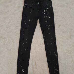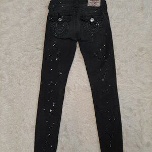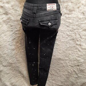 True Religion Woman's Black Supper Skinny Paint Splatter DistresseDenim Jeans 25