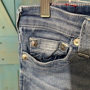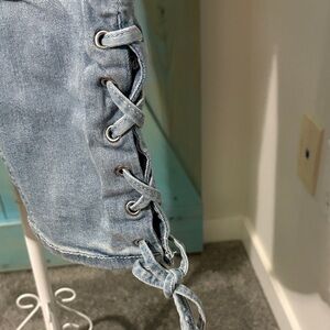 True Religion Women's Blue Jeans with Lace-Up Detail