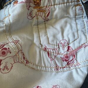 Chic slim fit jeans by True Religion. Classic blue hue. Perfect for everyday style.