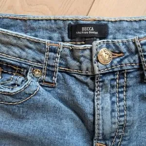 Classic medium wash denim with subtle fading and flattering bootcut silhouette. The Becca style is known for its curve-hugging fit through the hips and thighs with a slight flare at the hem — perfect with boots or heels.