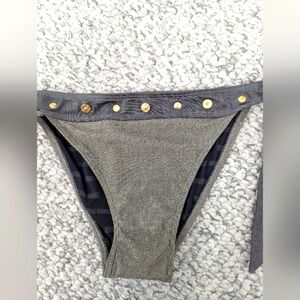 BNWOT True Religion Women's Gray & Metallic Bikini Bottom w/ Gold Accents